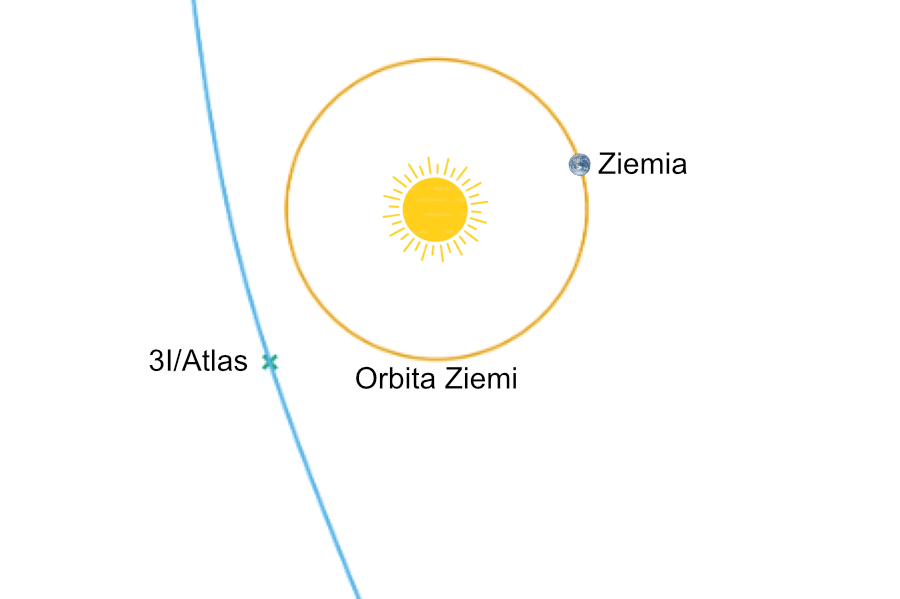 Trajektoria i położenie 3I/Atlas przed największym zbliżeniem do Słońca
